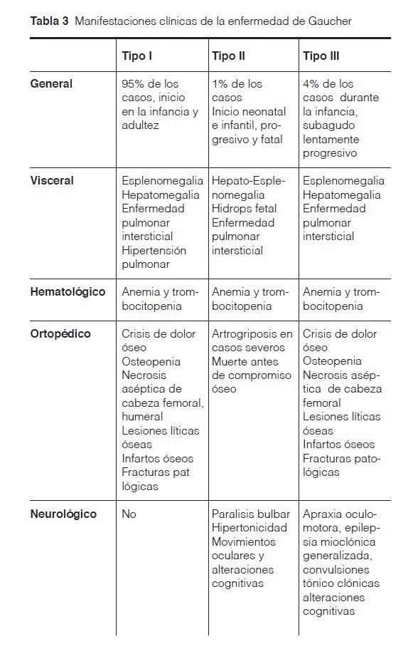 La EG es el trastorno metabólico de depósito lisosomal más frecuente. Es un padecimiento crónico, progresivo y multisistémico. Los síntomas más frecuentes son visceromegalias, destrucción ósea y citopenias periféricas.